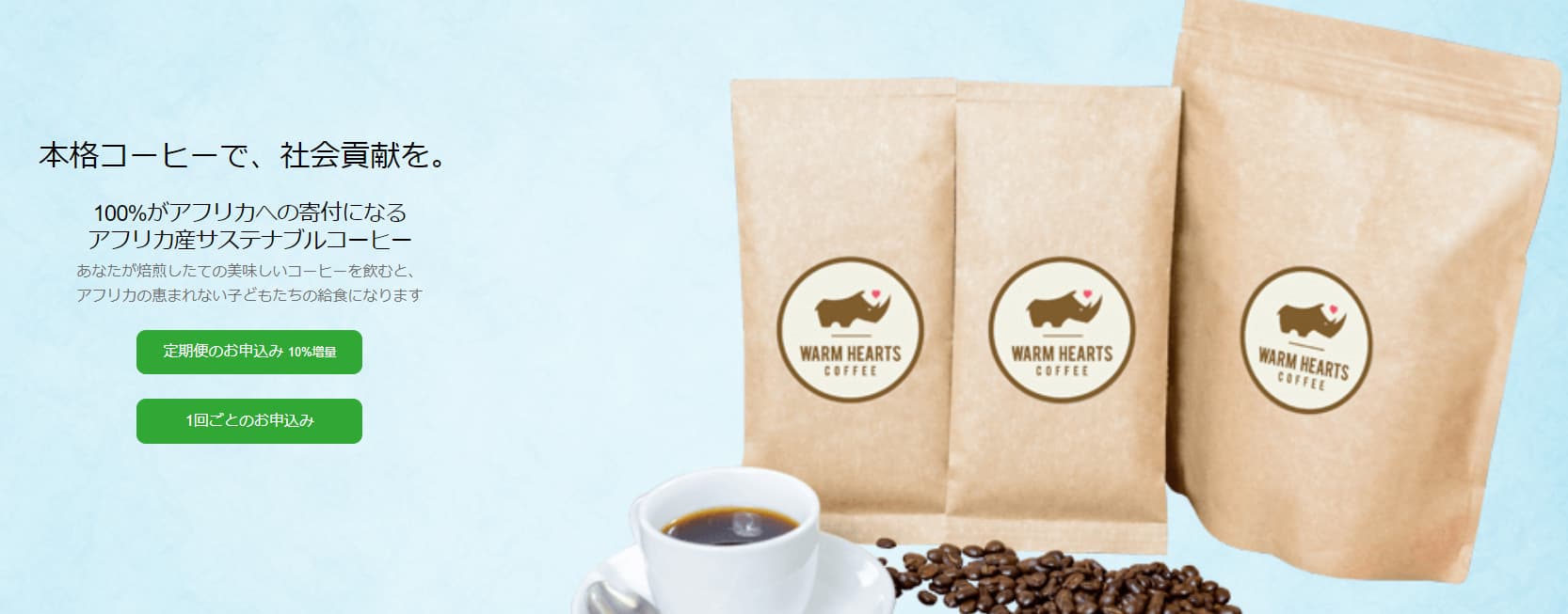 「ウォームハーツコーヒークラブ」は、金額の100%がアフリカの貧困国マラウイでの給食支援へ寄付されるアフリカ産サステナブルコーヒーです。