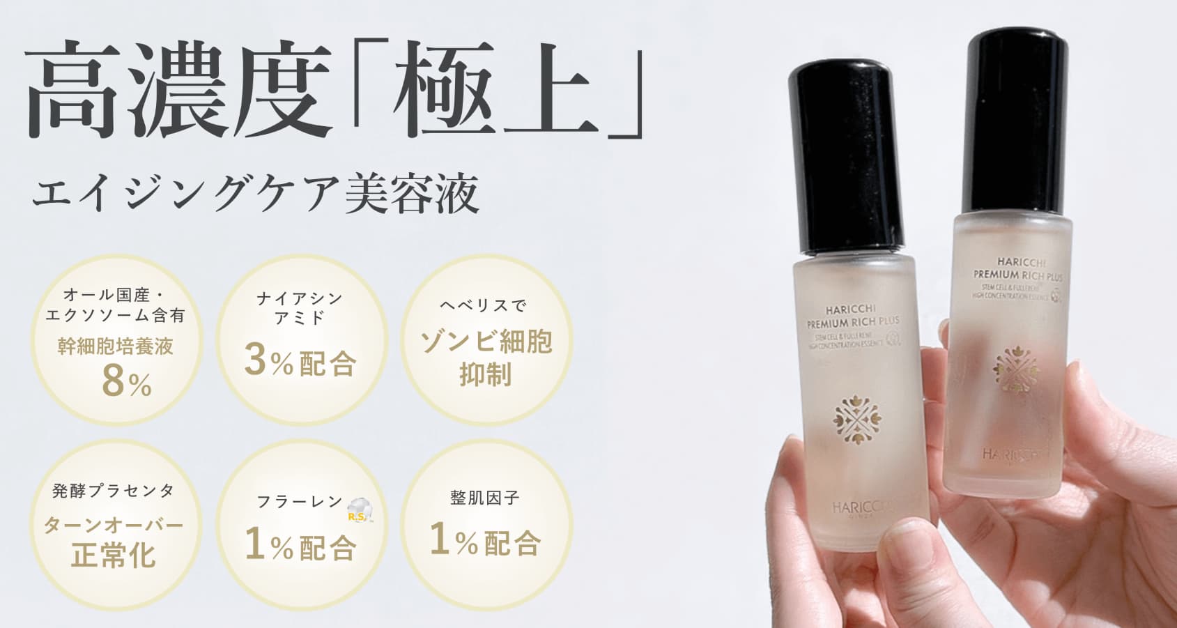 「ハリッチプレミアムリッチプラス」は、高濃度極上エイジングケア美容液です。