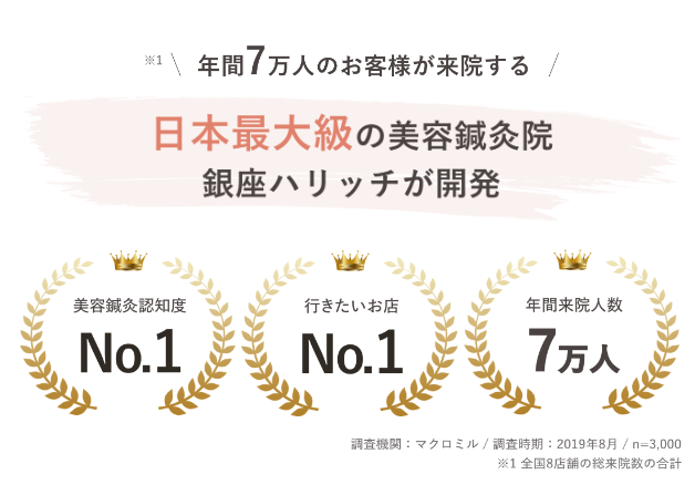 年間7万人が駆け込む美容鍼灸専門院の「銀座ハリッチ」は、東京、大阪、福岡に店舗を構える人気店です。