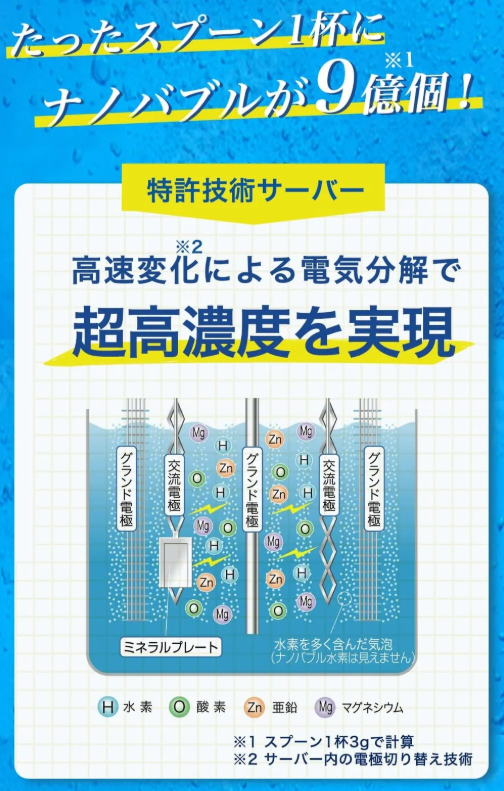 スイレックス5 | 1ccあたり3億個以上のナノバブル水素 |