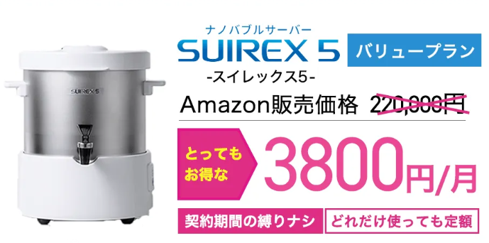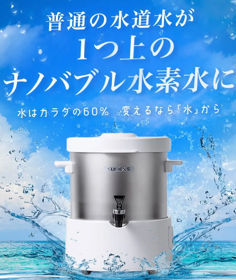 「SUIREX 5(スイレックス5)」な、ナノバブル水素水を毎日手軽に飲めると人気の水素水ウォーターサーバーです。