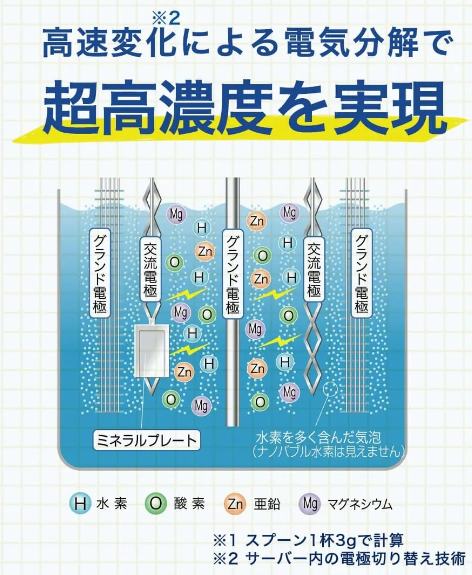 特許技術サーバーにより、超高濃度水素水を実現できるんです。