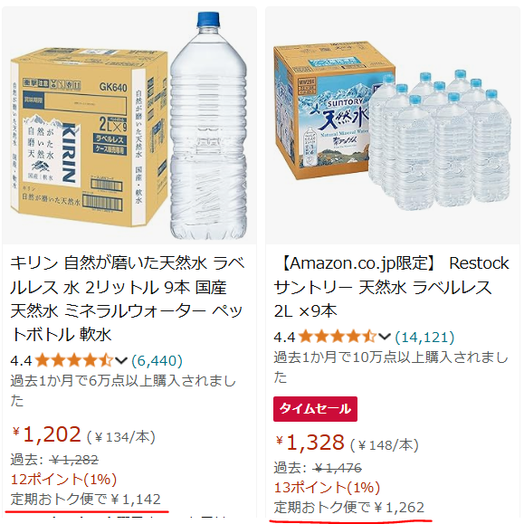 Amazonでは、単品購入だけではなくお水の定期便を申し込むことができます。